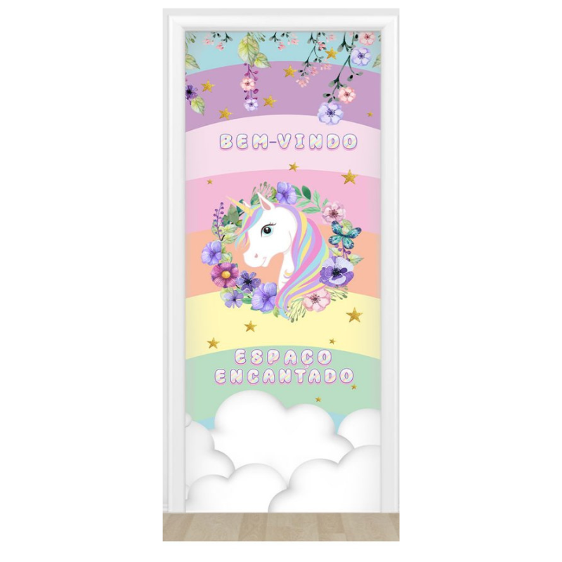 Capa De Porta Decorativo Tecido 0,85x2,10m - Unicórnio