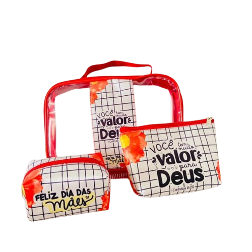 Kit com 3 itens (necessaire organizadora transparente, necessaire box e necessaire slim).