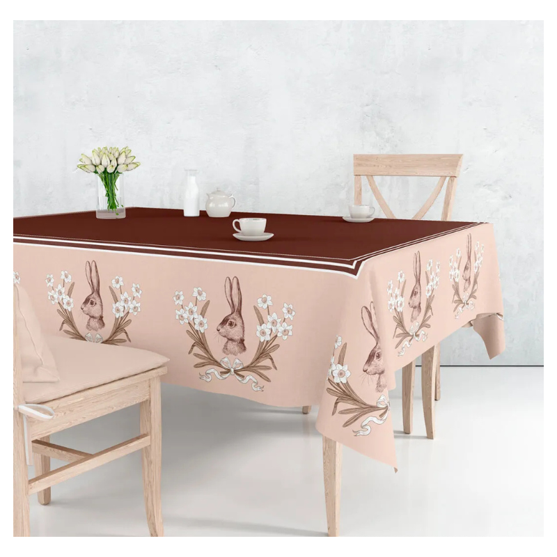 Toalha de Mesa Retangular - Páscoa vinho/bege