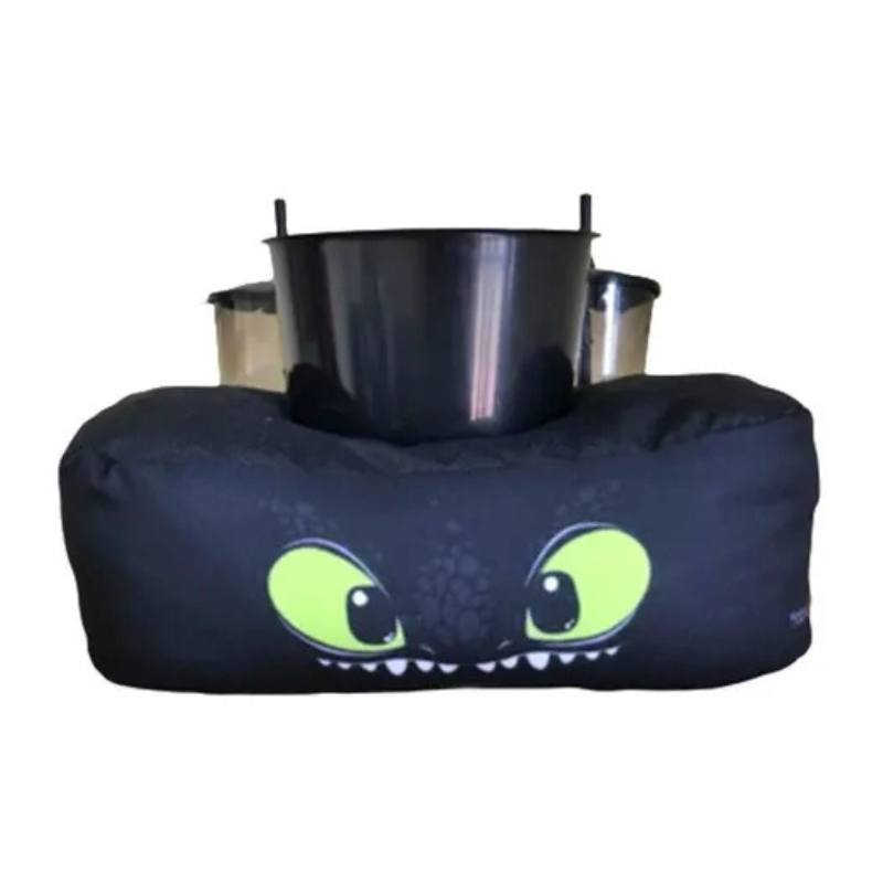 1 Almofada Preta Estampada com 2 Bolsos Laterais e entradas para 2 copos e 1 balde;