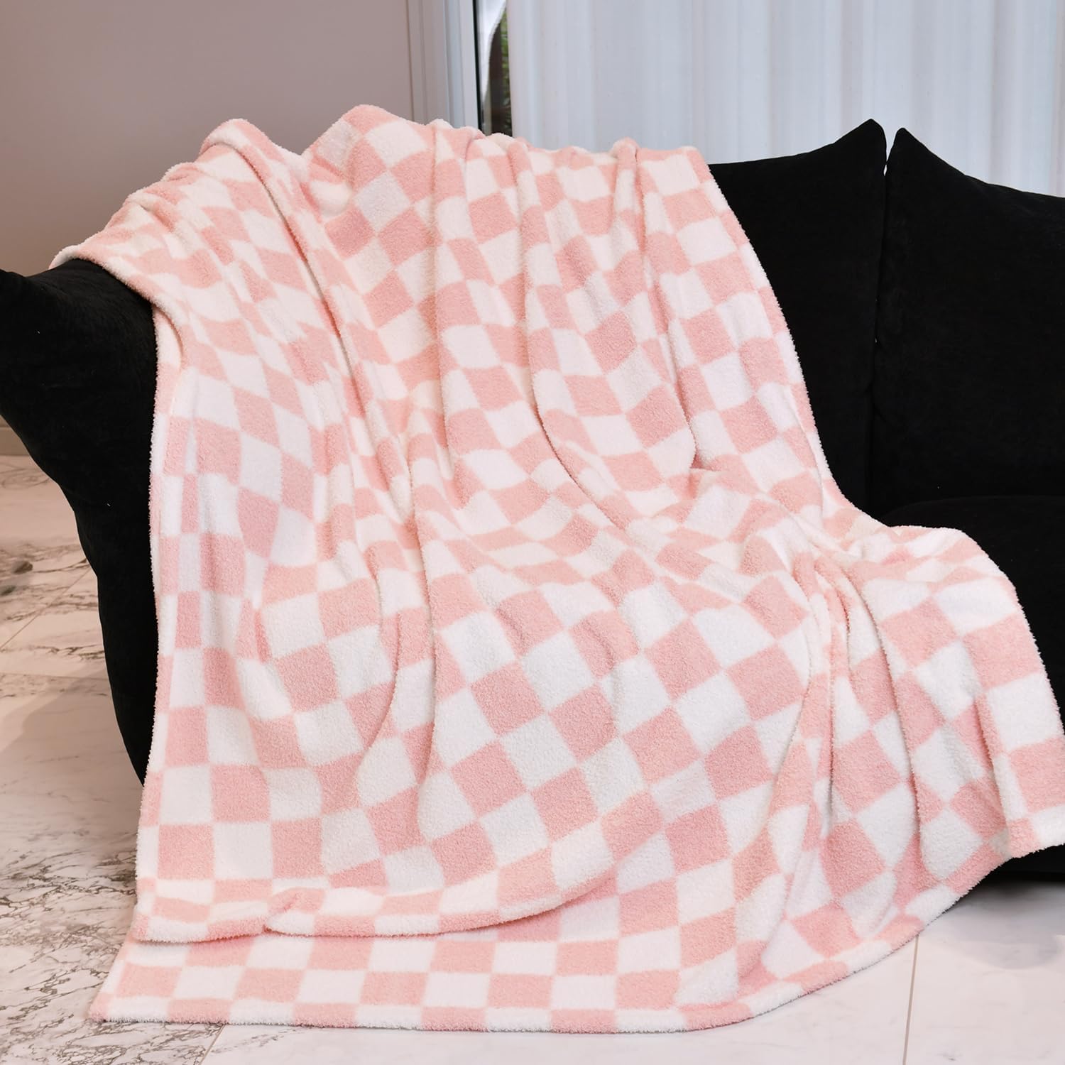 Manta quadriculada para sofá, cama, cadeira de viagem para todas as estações, 152 x 125 cm Rosa claro