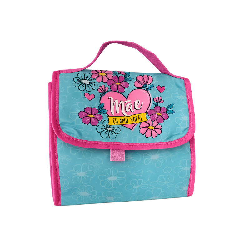 A bolsa térmica com tema de dia das mães conta com interior em alumínio e fechamento frontal, tornando fácil o manuseio no dia a dia. Material de alta qualidade.