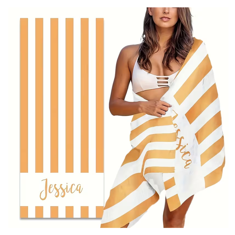 Canga Retangular - listras bege com nome