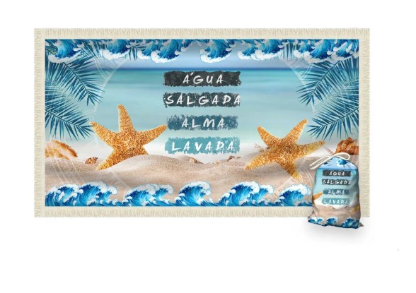 Canga Saida de Praia Retangular Seu nome Aqui - ÁGUA-SALGADA