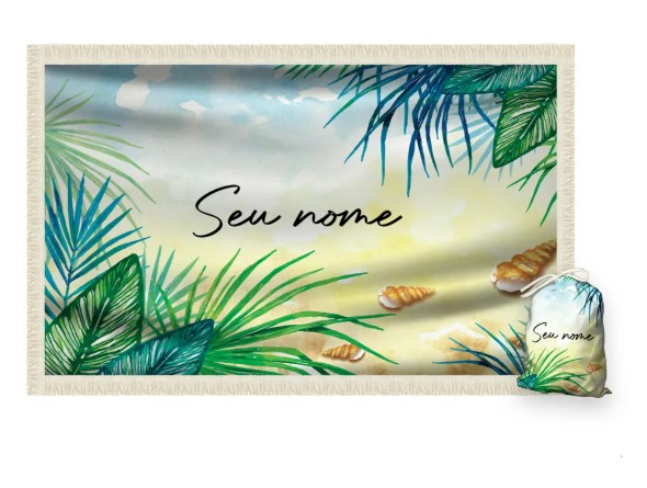 Canga Saida de Praia Retangular Seu nome Aqui - FOLHAGEM-BUZIOS