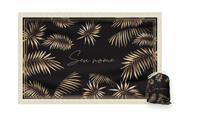 Canga Saida de Praia Retangular Seu nome Aqui - FOLHAS DE OURO