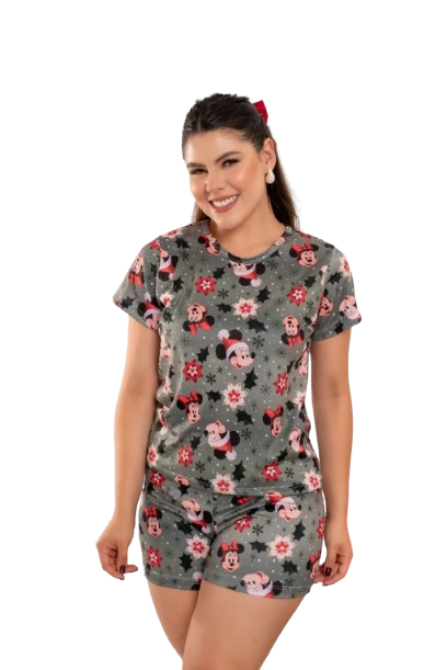 Pijama Familia Manga Curta Personagens Natal Mickey - 4 pijamas
