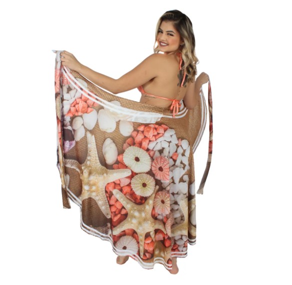 Essa peça vai te deixar ainda mais linda na praia ou na piscina, ja imaginou usar como saída de praia, para passar na sorveteria ou até mesmo naquele restaurante sem perder a elegância de estar usando uma peça bem bonita, confortável e super versátil! Você pode transformar de saia para vários formatos de vestido, tudo isso apenas com uma peça.