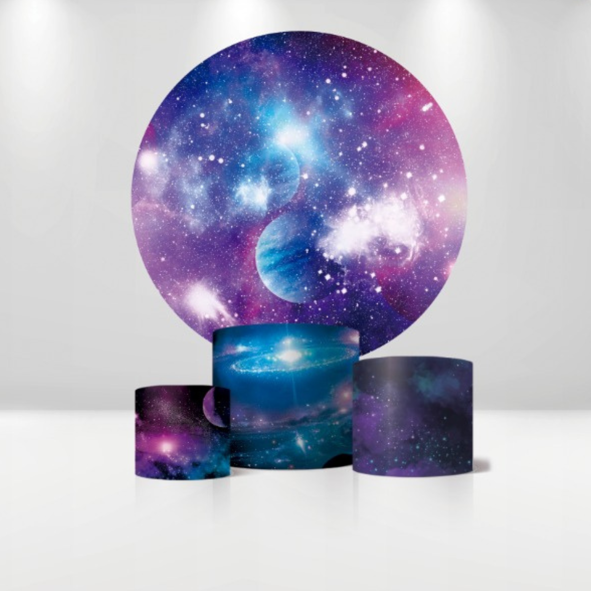 Este Veste Fácil é a solução perfeita para dar vida ao seu evento. Inclui um elegante painel redondo e três capas de cilindros personalizadas. Com ele, você pode criar um ambiente temático ou sofisticado com facilidade.